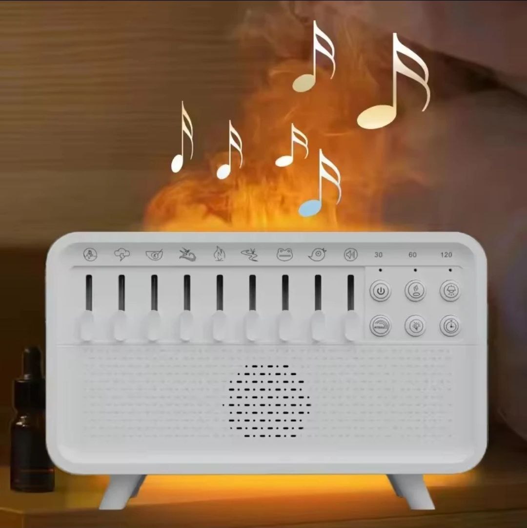 بوخور سرد نویز آرامش با طراحی خاص و کاربرد چندمنظوره؛ چراغخواب، پخش صدای طبیعت، اسپیکر بلوتوثی و مخزن اسانسپذیر؛ مناسب برای خواب و آرامش.